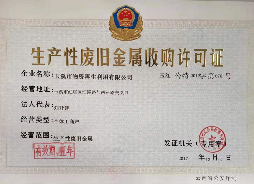 玉溪市物資再生利用有限公司經(jīng)營范圍廢舊金屬材料及非金屬材料、機械產(chǎn)品的再生、物資回收批發(fā)、加工、開發(fā)、利用;建筑材料,礦產(chǎn)品,金屬材料,閑置過時家具、家電、民用產(chǎn)品、五金、化工、水暖器材,工程機械批發(fā)零售、代購代銷;報廢舊車輛回收及報廢機動車拆解。